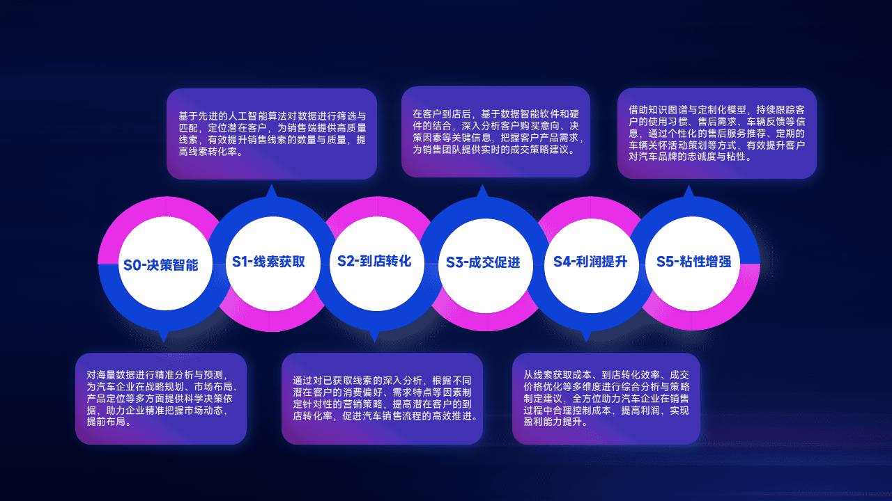 通过拓宽潜在客户来源、、优化线索分配并提高到店转化率,,,以增强销售效率。。同时,,,利用线索数据不断优化分析模型,,,有效提升转化率,,扩大营销影响力。。。。